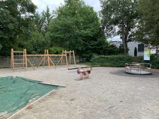 Une tour à grimper, des balançoires, un carrousel, une balançoire, une tyrolienne, des tables de ping-pong, un point d'eau avec un ruisseau et une grande prairie font battre le cœur de tous les enfants.