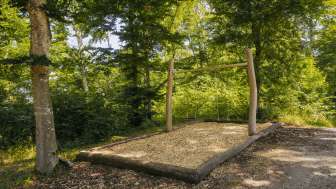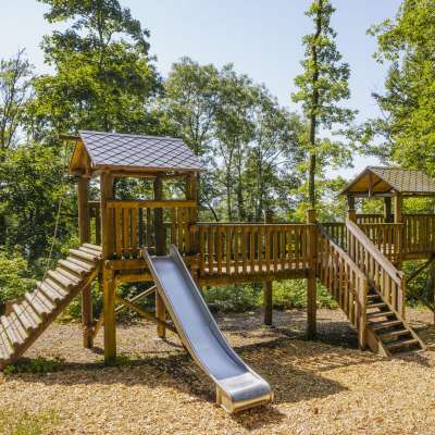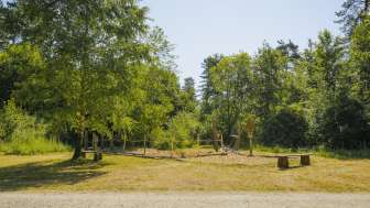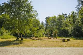 Les enfants peuvent se défouler sur la structure en bois et la balançoire. Directement près de l'aire de jeux, il y a aussi un coin barbecue pour faire des grillades et des tables pour pique-niquer.