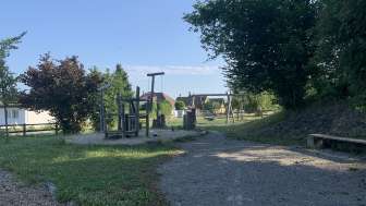 L'installation de pumptrack ainsi qu'un petit foyer se trouvent également à proximité de l'aire de jeux.
