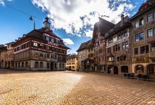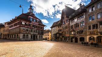 Le magnifique hôtel de ville de Stein am Rhein séduit par ses peintures de façade colorées et ses impressionnants détails de colombage. Situé au cœur de la vieille ville, il témoigne de la richesse de l'histoire et de la culture de cette ville pittoresque au bord du Rhin.