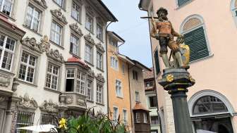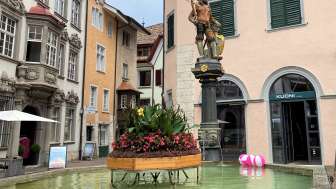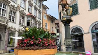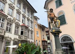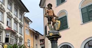 La fontaine octogonale a été érigée au 16e siècle en tant que fontaine en pierre. Guillaume Tell, symbole du Suisse épris de liberté, orne la colonne de la fontaine.