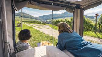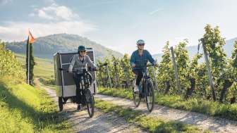 Commencez votre prochain voyage à vélo et emportez votre lit avec vous. C'est exactement ce que vous propose le Velocamper. Grâce à ce vélo cargo électrique spécialement conçu à cet effet et équipé d'une tente intégrée, vous êtes parfaitement équipé pour un voyage aventureux à travers la Suisse orientale. Vivez une randonnée à vélo inoubliable, à travers des vignobles à perte de vue, des paysages pittoresques et de jolis villages.