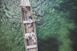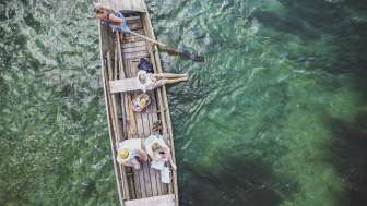 Promenades en weidling avec piques et rames, sans moteur.