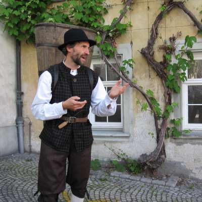 Au cours de la visite, le porteur du bücki montre différents coins de la vieille ville de Schaffhouse qui étaient liés au vin et à la viticulture. En chemin, tu apprendras toutes sortes de choses intéressantes, mais aussi amusantes, sur la viticulture schaffhousoise, notamment ce qu'il en était du "Badschenki-Wii", où se trouvaient les meilleurs vignobles de la ville, pourquoi les "Weinsinner" étaient redoutés ou ce que l'on entend par "Purligiiger".