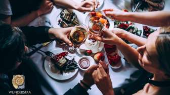 Avec l'un de nos partenaires gastronomes, nous proposons régulièrement, sous forme de "Wine & Dines", une gastronomie de pointe avec accompagnement de vin en quatre plats dans un cadre agréable. Le point fort de l'année, en novembre, est le "à la art", le Wine & Dine dans le cinéma à 360° de Rhyality, dans la plus ancienne halle industrielle, juste au-dessus des chutes du Rhin.